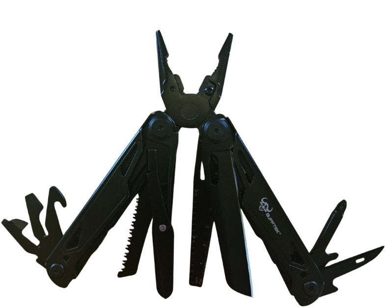 This BuffTek™ Multi-Tool is designed for durability, precision, and versatility. Engineered from premium stainless steel, this all-in-one tool delivers unmatched performance for outdoor enthusiasts, tradesmen, and everyday users who demand reliability in any situation. Its compact foldable design ensures portability without compromising strength or function.