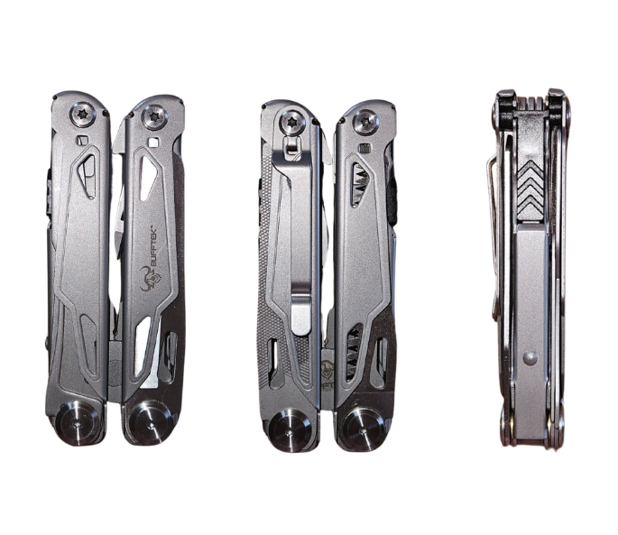 The BUFFTEK™ Multi-Tool is built for extreme environments — resistant to rust, moisture, and wear. The stainless steel frame maintains edge retention and resilience under heavy use, making it ideal for camping, construction, repairs, and survival situations.