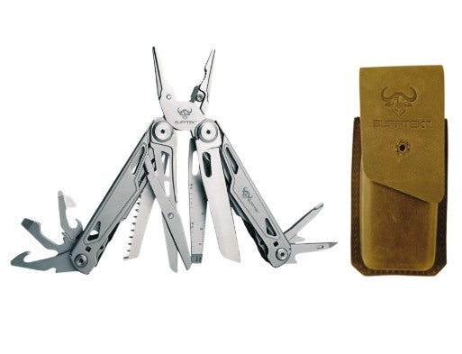 Together, the Bufftek™ Multi-Tool and Genuine Leather Pouch form a rugged, reliable duo — built to work hard and age beautifully. The leather pouch can be worn either vertically or horizontally on your belt, turning your 14-function multi-tool into a dependable everyday carry that’s always within reach.
